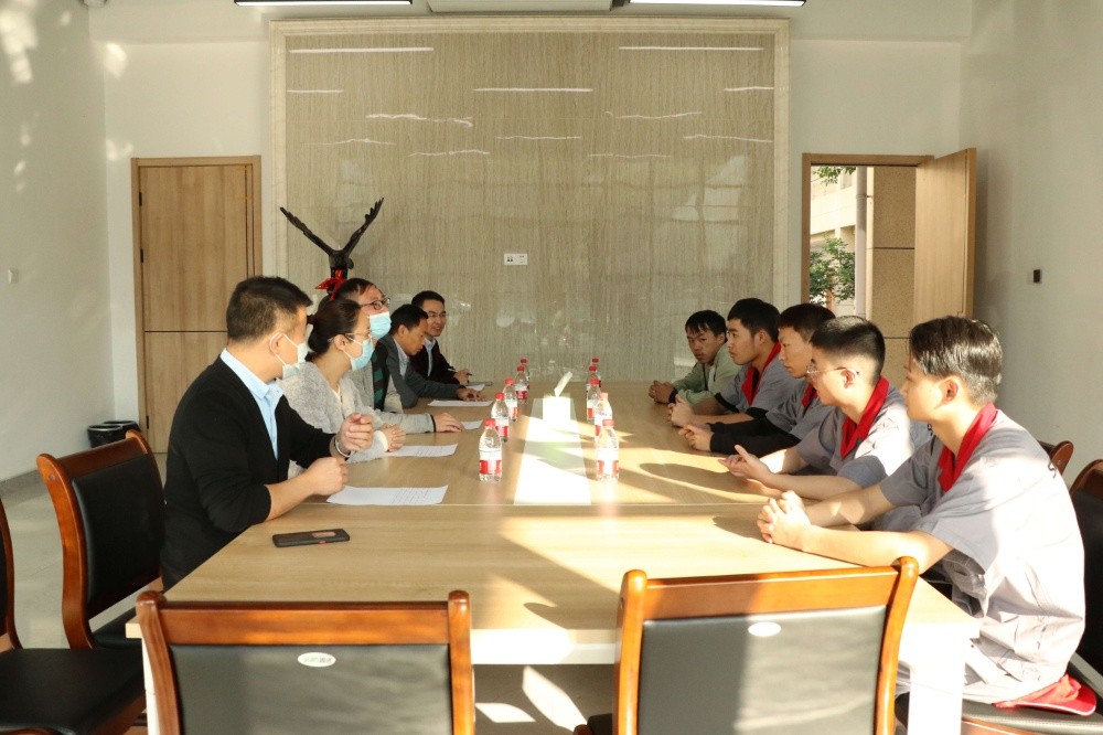 為持續(xù)深化校企合作,鑫可傳動(dòng)科技有限公司在直接引進(jìn)合作院校人才、為學(xué)生提供實(shí)習(xí)鍛煉機(jī)會(huì)的同時(shí),還與合作院校保持密切的聯(lián)系互動(dòng)。10月18日下午,云南國(guó)土資源職業(yè)學(xué)院二級(jí)學(xué)院黨總支副書記陳偉、教學(xué)秘書何雨潔、嘉興市大學(xué)生社會(huì)工作服務(wù)中心副主任樊鵬飛來我司看望和慰問實(shí)習(xí)學(xué)生,公司副總經(jīng)理兼經(jīng)營(yíng)管理委員會(huì)副主任陳光耀、人事行政副總監(jiān)徐輝熱情接待了陳副書記一行。