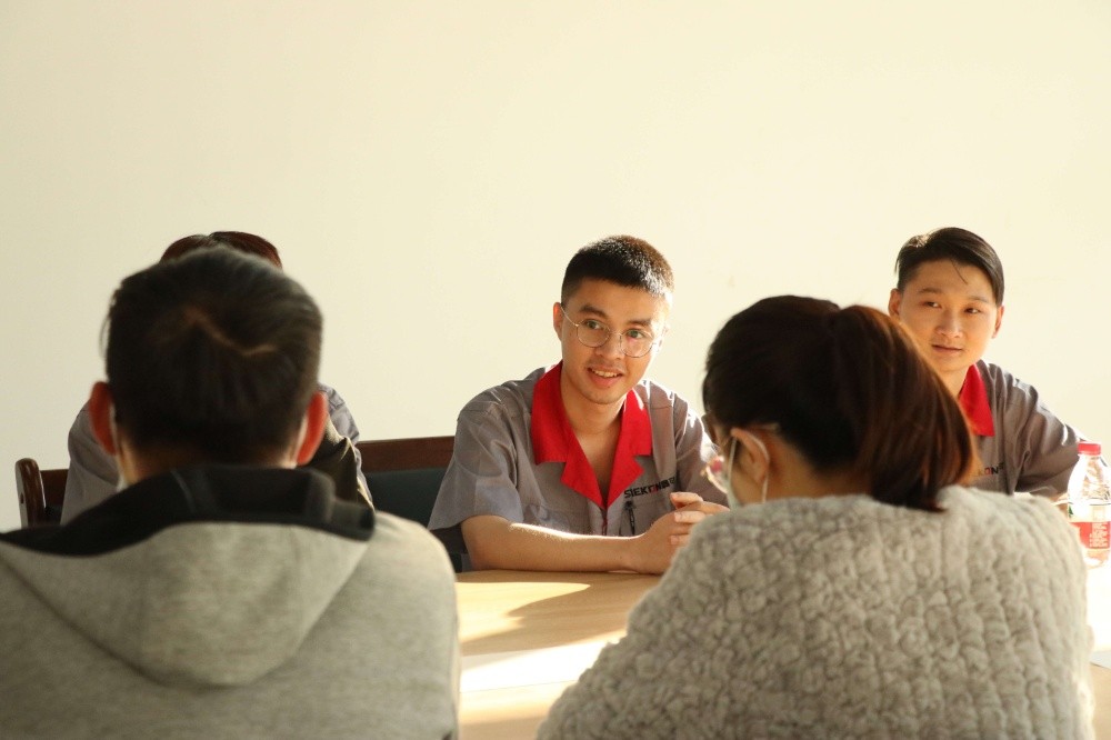 陳副書記對(duì)公司為學(xué)生提供實(shí)習(xí)平臺(tái)深表感謝,在與實(shí)習(xí)生親切交流中,陳副書記深入了解他們的實(shí)習(xí)和生活情況,叮囑同學(xué)們要虛心好學(xué)、珍惜實(shí)習(xí)的機(jī)會(huì),通過崗位實(shí)習(xí)提升自已的實(shí)際操作技能和綜合素質(zhì),并囑咐同學(xué)們要尊重師傅、感恩鑫可,嚴(yán)格遵守公司各項(xiàng)規(guī)章制度。實(shí)習(xí)生們表示:非常感謝鑫可傳動(dòng)為他們提供實(shí)習(xí)平臺(tái),非常感謝老師來看望和慰問,表示一定不辜負(fù)老師的期望和公司的傾心培養(yǎng),努力提高自身能力和素養(yǎng),保證出色完成實(shí)習(xí)任務(wù)。